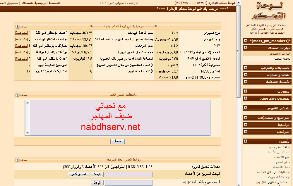 السلام عليكم هذا ستايل خاص بلوحة التحكم ( ذهبي على بني) من تصميم nabdhserv.net أتمنى أن يحوز على رضاكم تحياتي